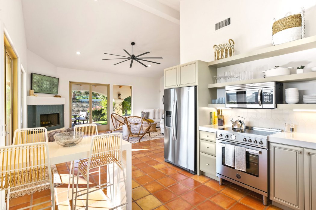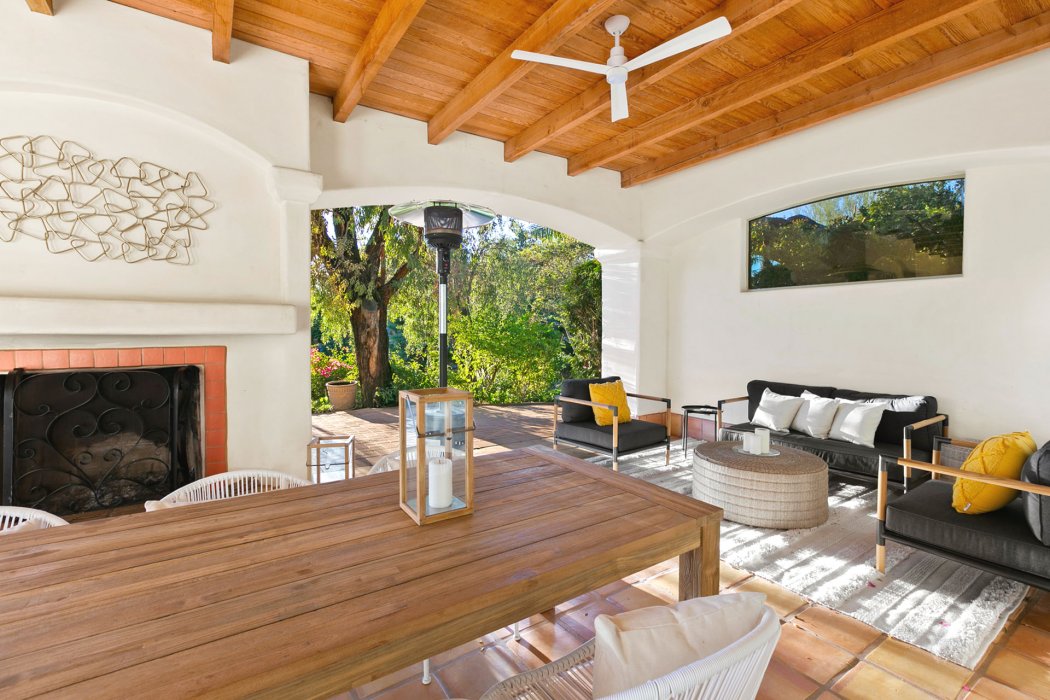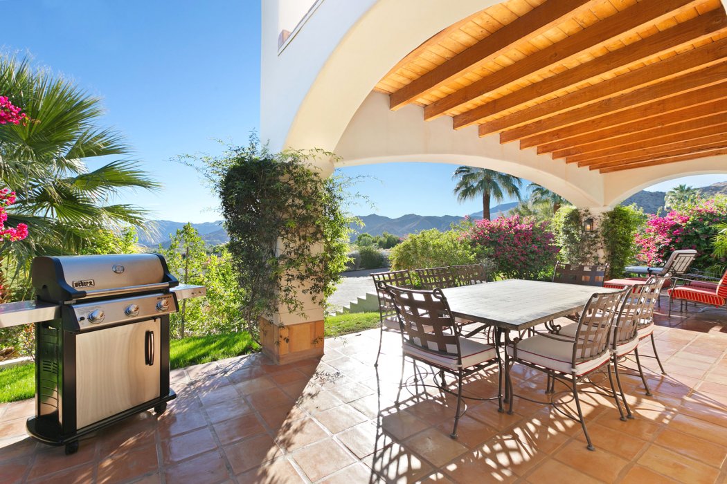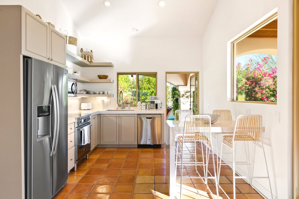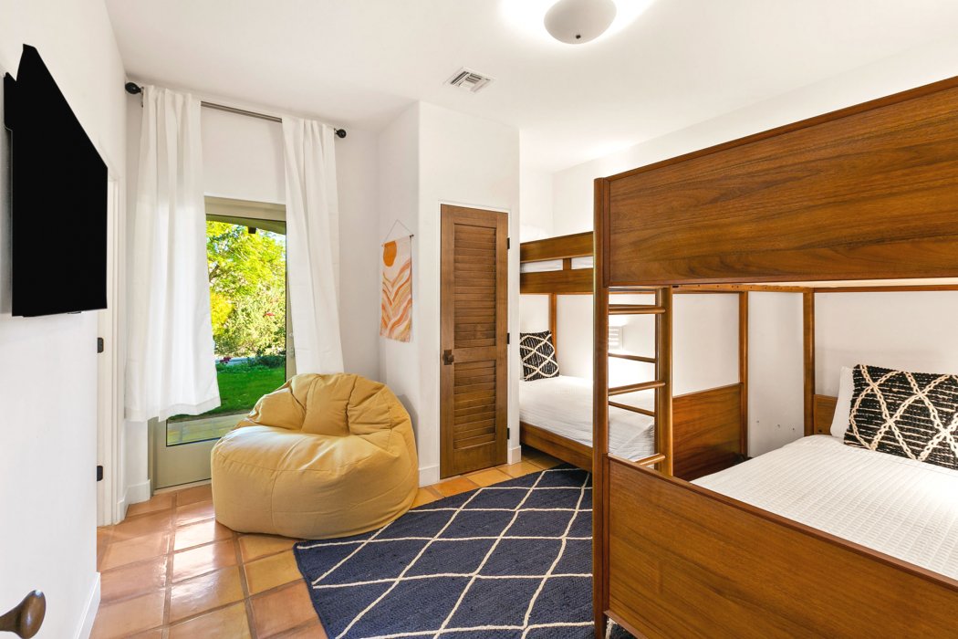 The Bungalow provides a King Master Suite with private doors to the patio, flatscreen TV and en suite bath. The Queen Bedroom has a flatscreen TV, private doors to the yard and access to the Jack and Jill bathroom with a tub/shower combo. The third Guest Bedroom has 2 bunk beds for a total of 4 twin beds, flatscreen TV, private door to the yard and access to the Jack and Jill bath. The Bungalow has its own gourmet kitchen, living room, fireplace, half bath, and laundry room. The covered terraces, outdoor dining for 8, BBQ and lush gardens make al fresco meals a treat.
