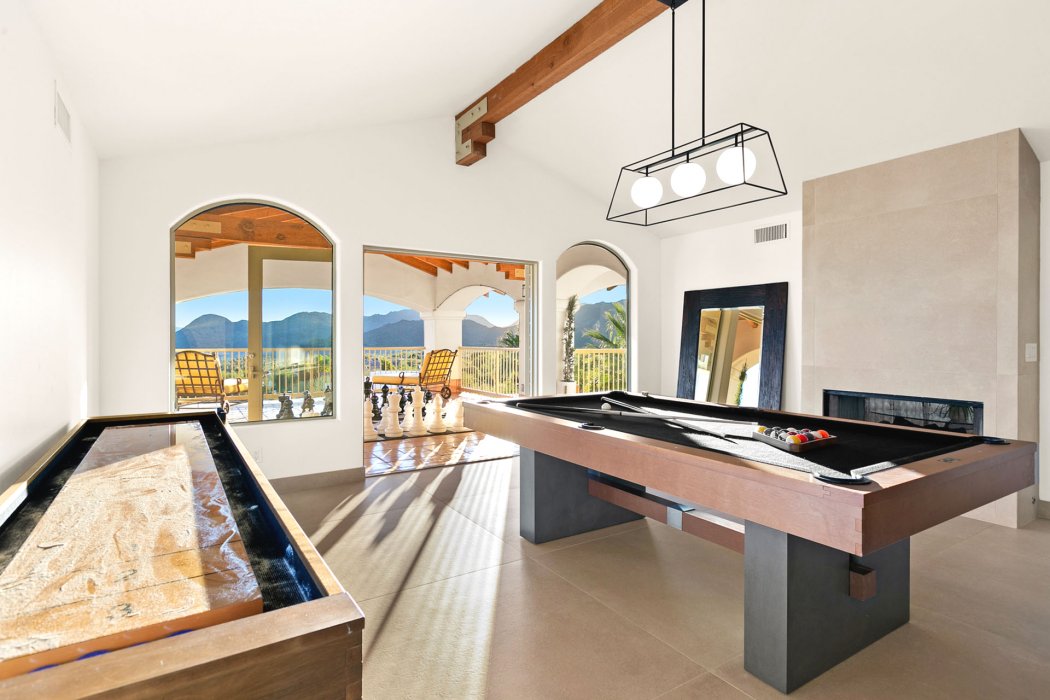 The Villa also features a Great Room, Media Room, indoor/outdoor bar and a Game Room with billiards and shuffleboard. Upstairs and downstairs wraparound terraces with misters to relax and enjoy the incredible views. A luxuriously outfitted chef's kitchen as well as indoor dining for 20 make meals at the Villa an event everyone will enjoy.